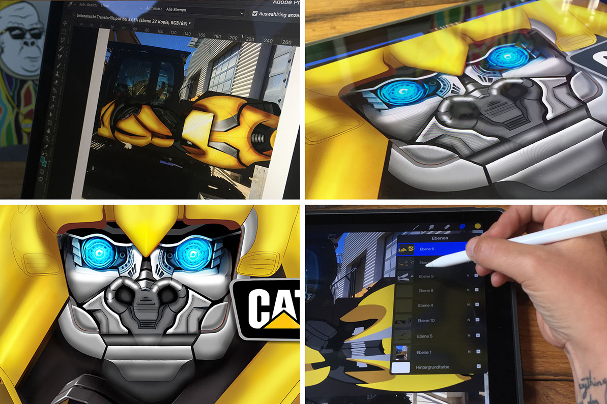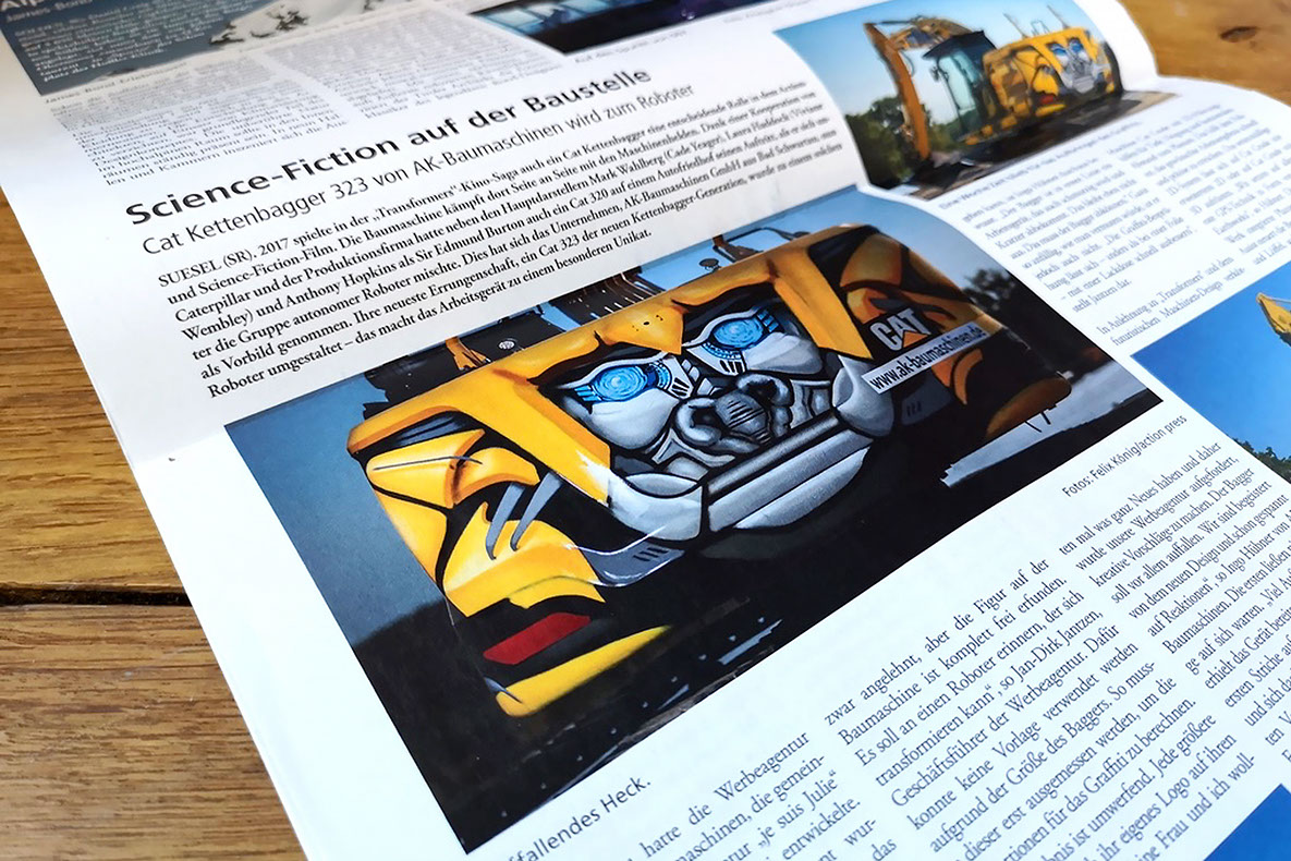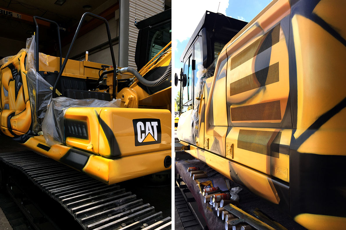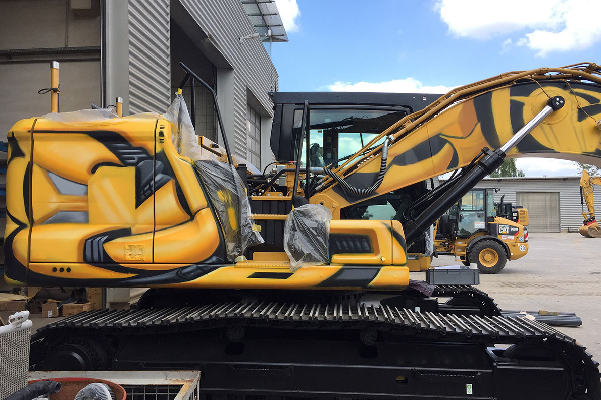 Konzeption und Umsetzung eines Designs für ein Caterpillar Kettenbagger in Zusammenarbeit mit der Werbeagentur EWA und dem Graffiti-Künstler Vaine.