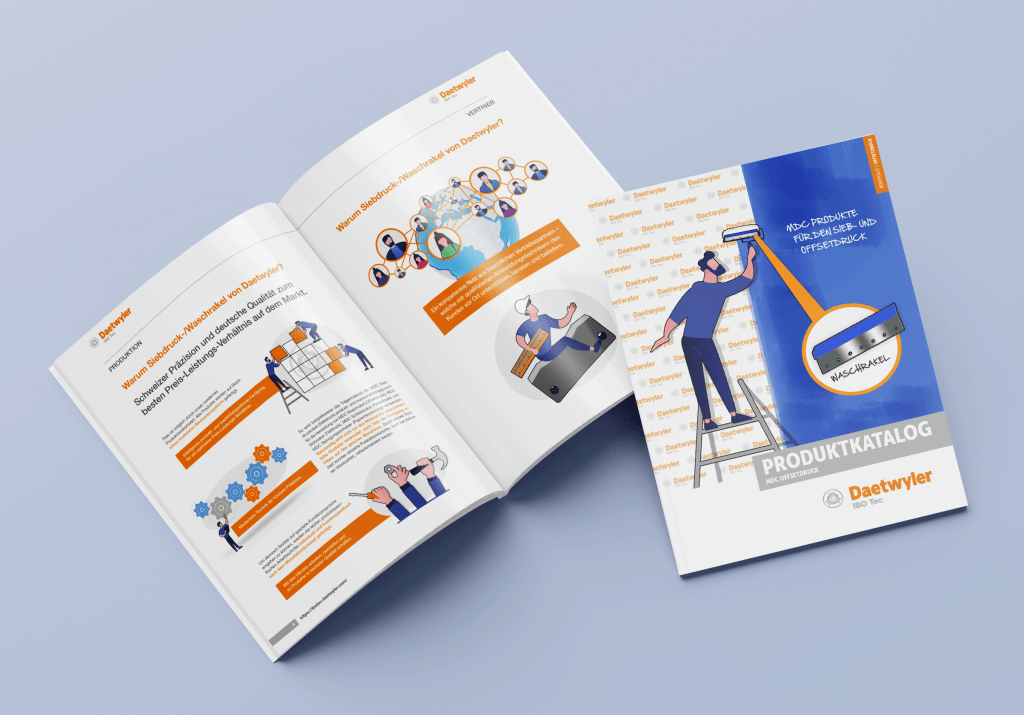 Entwicklung von verschiedenen Produktbroschüren zur Vorstellung des Produkt-Portfolio im Bereich MDC Offsetdruck und MDC Siebdruck sowohl als interaktives Pdf-Bestellformular als auch als hochwertig gedruckte Produktbroschüre.