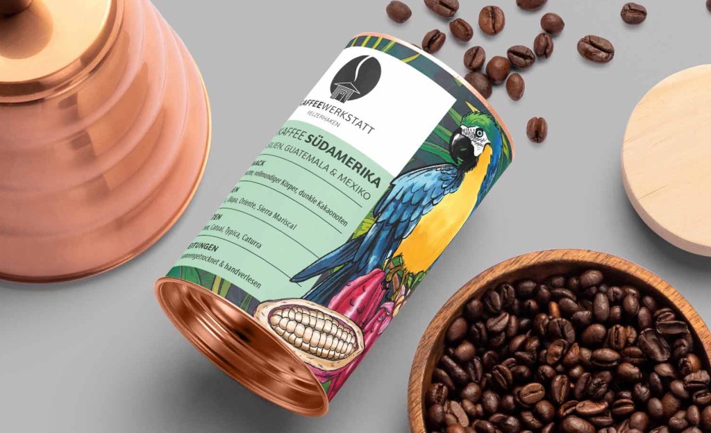 Für das Startup die Kaffeewerkstatt Pelzerhaken habe ich das Logo sowie die Verpackungen für Kaffeetüten und Kaffeedosen entwickelt. Für die selbstgerösteten Kaffemischungen „Afrika, Südamerika, Espresso Miscela und Café Crème Miscela“ wurden dschungelartige Umgebungen illustriert mit den passenden Tieren und Pflanzen.